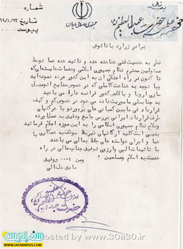 “İmam Humeyni Paris’e geldiğinde, Fransız polisi İmamı korumak için birkaç kişi gönderdi, ancak Sayın Humeyni sıra bana gelene kadar hiçbirini kabul etmedi. O ilk görüşmede, benimle Sayın Humeyni arasında bir bağ kuruldu ve Farsça da konuştuğum için bu bağ daha da önem kazandı. İmamın Nouvel-le-Chateau’daki 116 günlük kalışı boyunca, her zaman İmam’ın yanındaydım.”